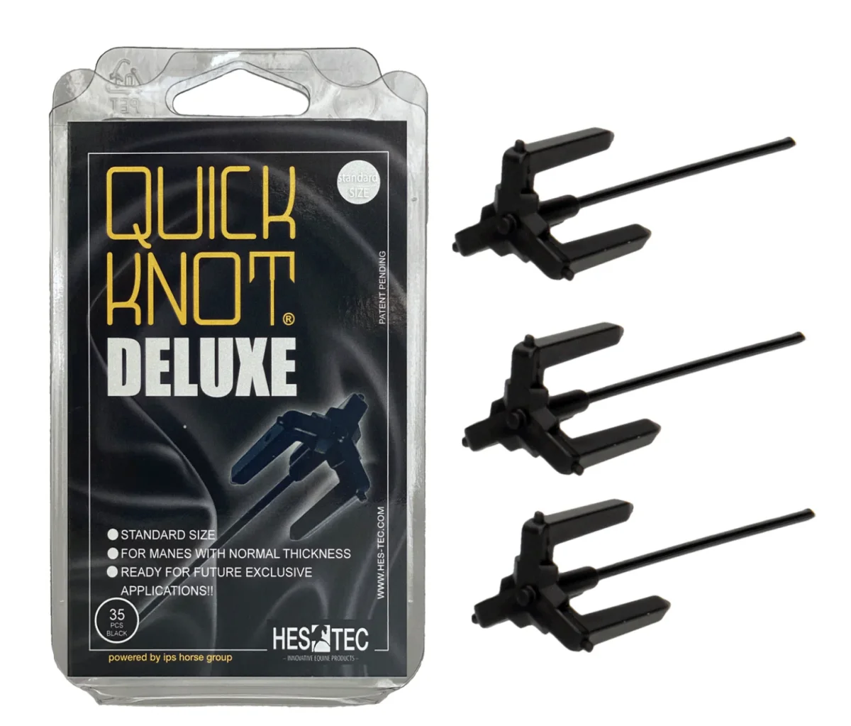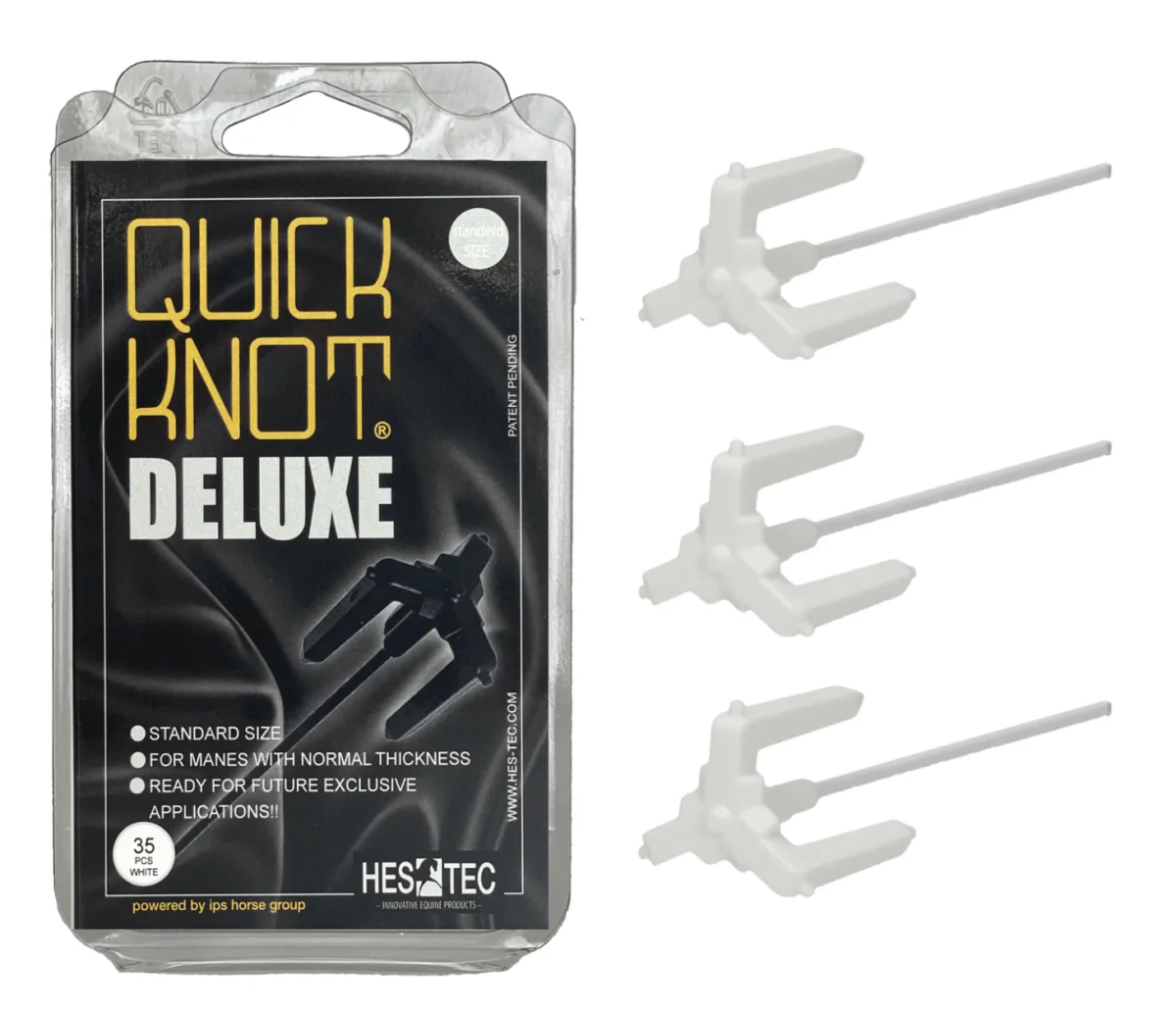 – Accessoires pratiques pour le tressage– Excellents maintien et fixation des tresses de compétition– Réutilisable si bien manipulés– Très facile à utiliser– Ne tire pas les crins lors de l’élimination des nœuds Un paquet contient 35 éléments.