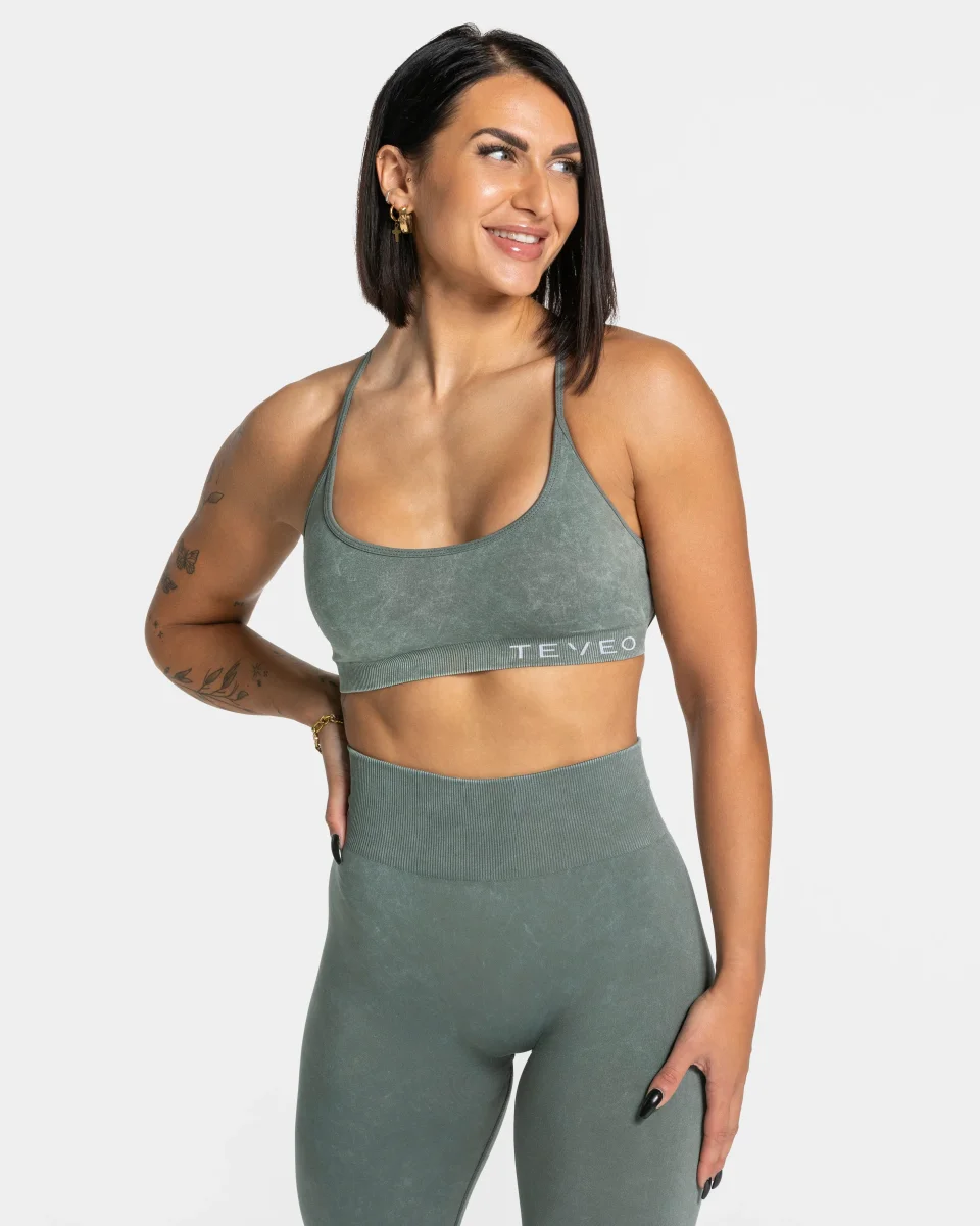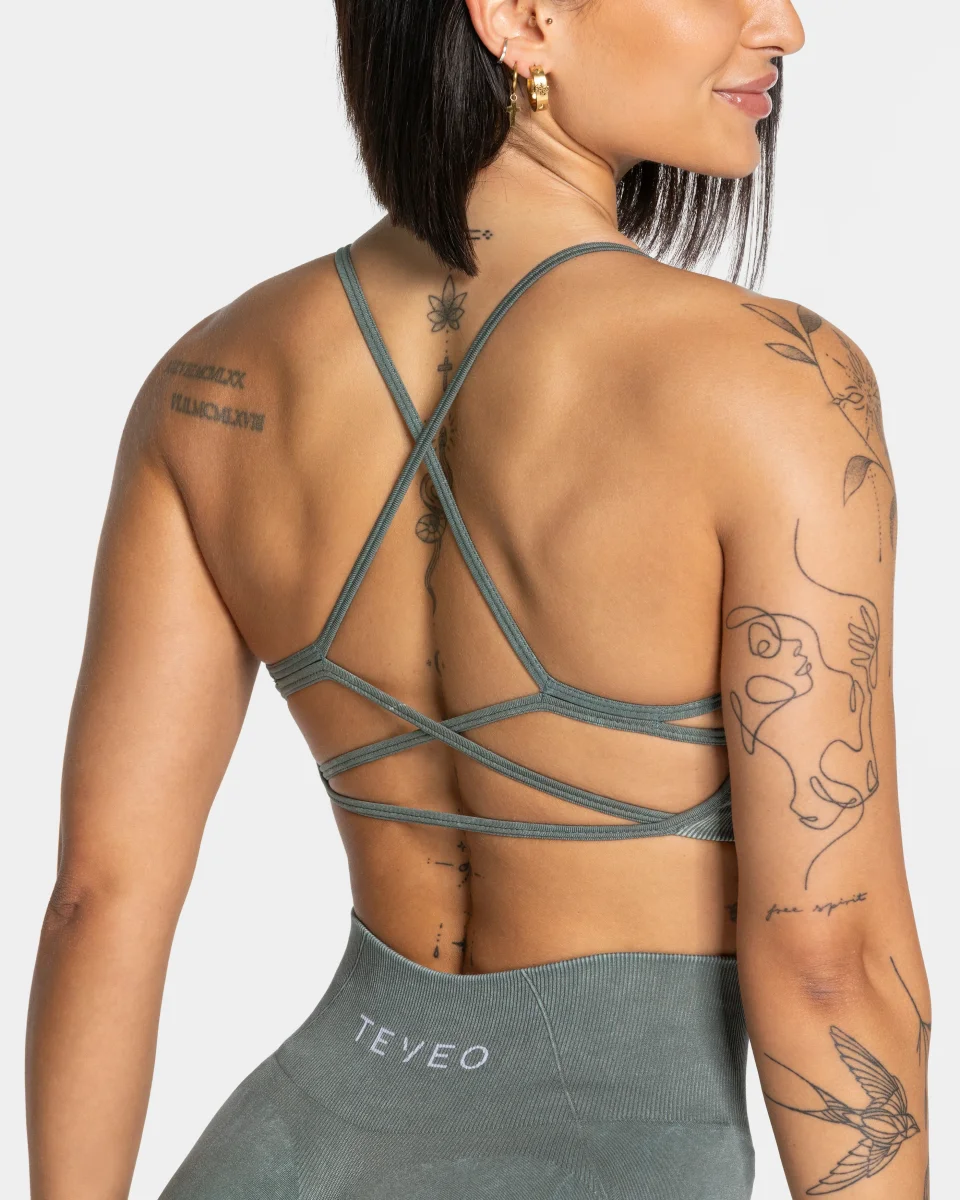 Der Acid BH in Basil ist kurz geschnitten und bietet dennoch einen guten Halt beim Training. Während er von vorne durch sein klassisches Design mit dem gestickten TEVEO Logo überzeugt, fällt von hinten die detaillierte Schnürung auf. So zaubert er dir einen wunderschönen Rücken.