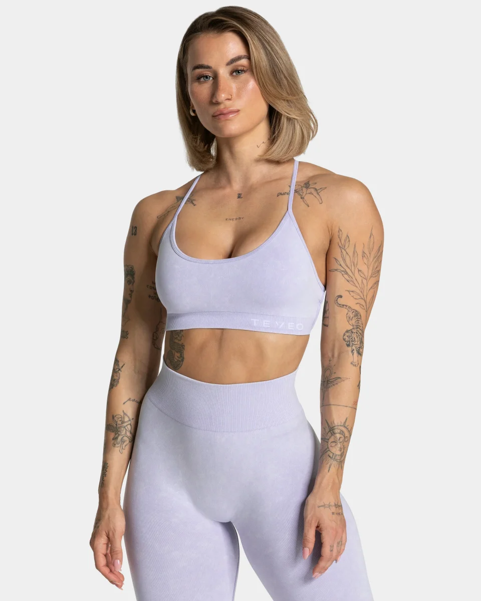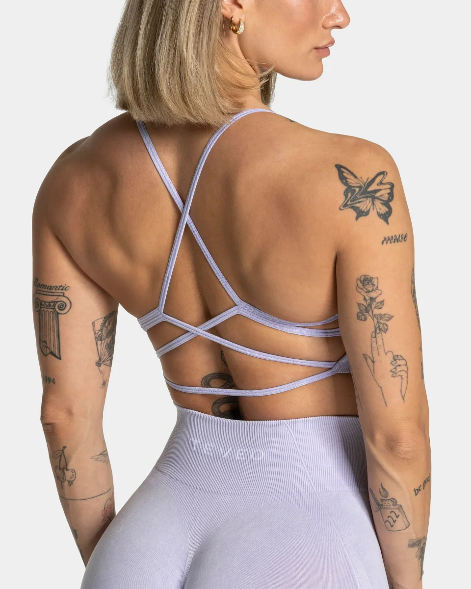 Der Acid BH in Flieder ist kurz geschnitten und bietet dennoch einen guten Halt beim Training. Während er von vorne durch sein klassisches Design mit dem gestickten TEVEO Logo überzeugt, fällt von hinten die detaillierte Schnürung auf. So zaubert er dir einen wunderschönen Rücken.