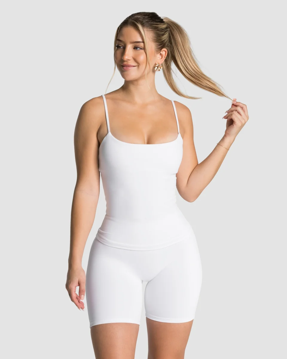 Das Allrounder Cami Top lässt sich perfekt mit den Allrounder Shorts oder Leggings kombinieren. Hier findest du noch einmal alle Vorteile des Allrounder Cami Tops in Weiß auf einen Blick: