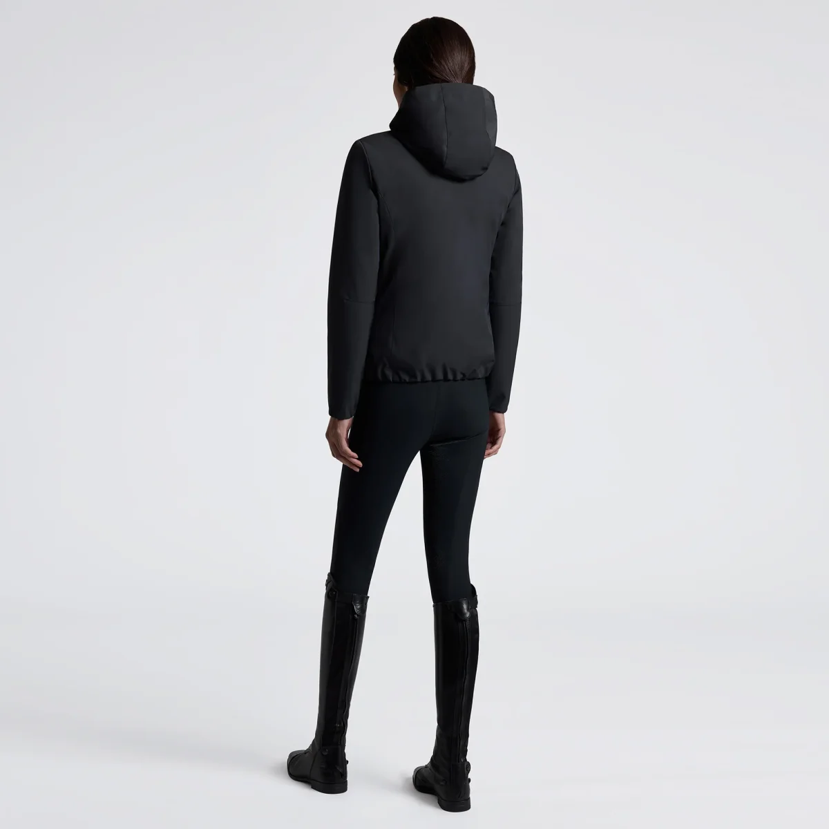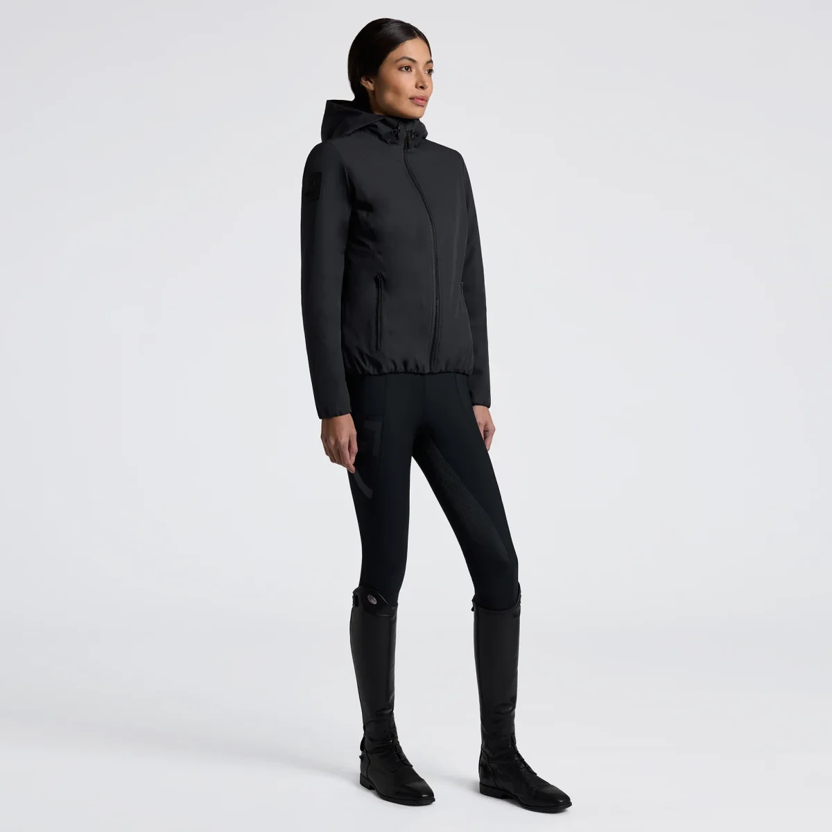 Le blouson Bomber pour femme Cavalleria Toscana en nylon est un vêtement technique conçu pour offrir protection et confort thermique lors des activités de plein air. Réalisé en nylon résistant et rembourré de matière synthétique, il est doté d’une capuche avec fermeture magnétique, de fermetures éclair thermosoudées et de poches latérales fonctionnelles. Orné du logo CT ton sur ton, il allie praticité et style pour l’équitation contemporaine.