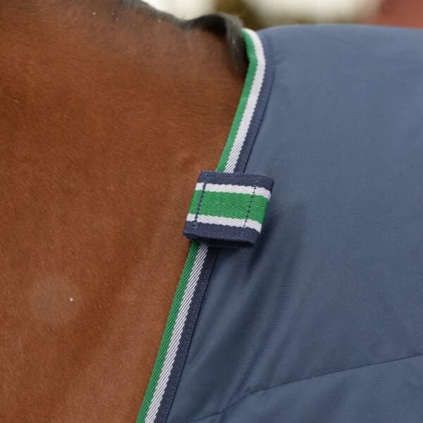 Disponible avec 300g ou 150g d’isolant et deux doublures différentes. SD, doublure Stay-dry qui peut être mise sur un cheval mouillé et le matériau Stay-dry évacuera l’humidité plus rapidement de la peau du cheval, aidant à sécher le cheval plus rapidement et SF, doublure Silk-feel/Dermo-care qui fonctionne de manière similaire à la doublure Stay-dry en ce sens qu’elle évacue l’humidité mais à un rythme plus lent que la polaire et garde le poil soyeux et lisse.