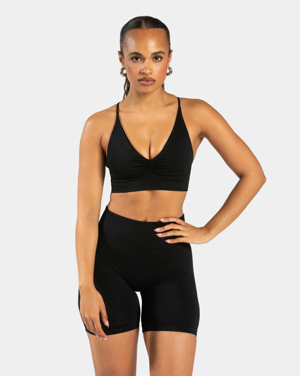 Der Charming Pro BH in Schwarz überzeugt durch seine feminine Triangle-Form und dem gerafften Design im Brustbereich. Die strukturierte Rippenpartie bietet angenehmen Halt, während die dünnen, verstellbaren Träger abnehmbar sind und sowohl klassisch als auch überkreuzt getragen werden können – für maximale Styling-Flexibilität. Mit dem Charming Pro BH erhältst du 2 wechselbare Pads für weitere Anpassungen, während das Kontrast Logo auf der Rückseite einen dezenten Akzent setzt.