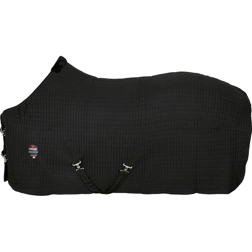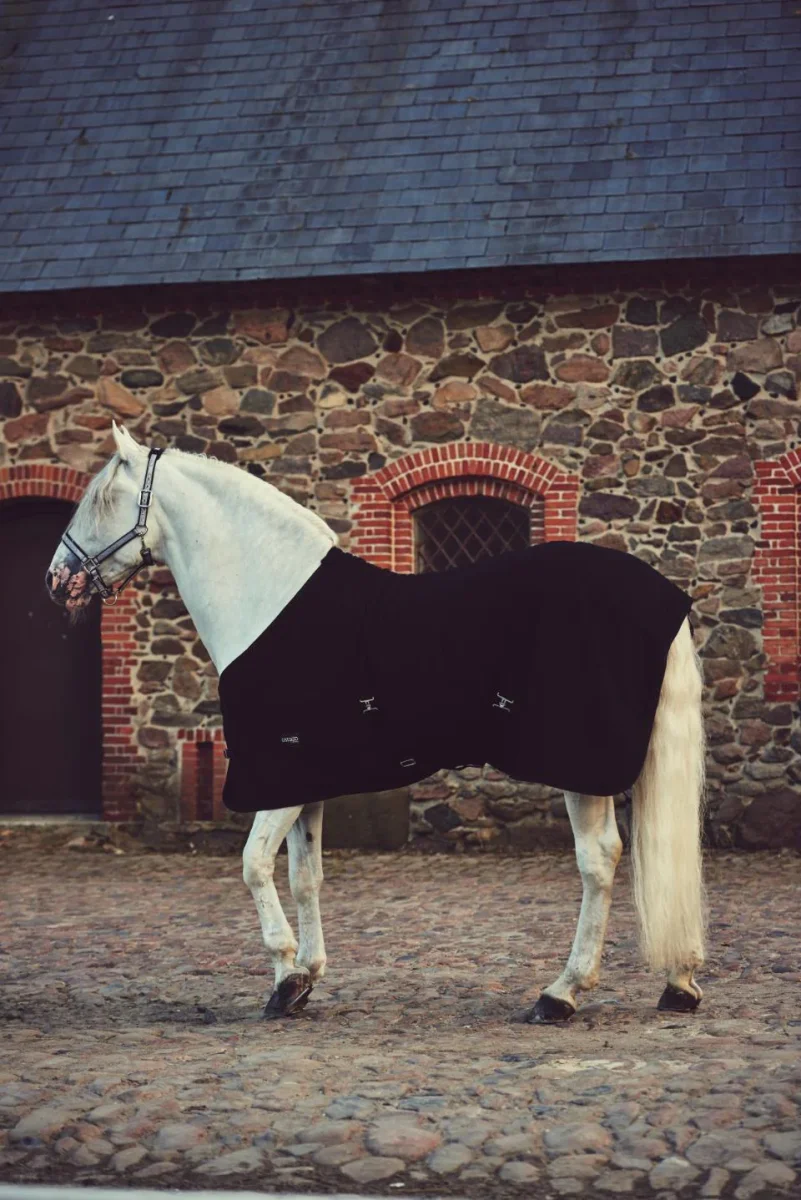 Couvertureséchante confortable et fonctionnelle en 100% acrylique avec effet laine. Idéale comme couverture de transport ou après l’entraînement, car le matériau évacue l’excès de chaleur et de sueur du cheval. La couverture est dotée d’une bordure noire, d’une double fermeture frontale, de sursangles transversales amovibles et de courroies de jambe élastiques.