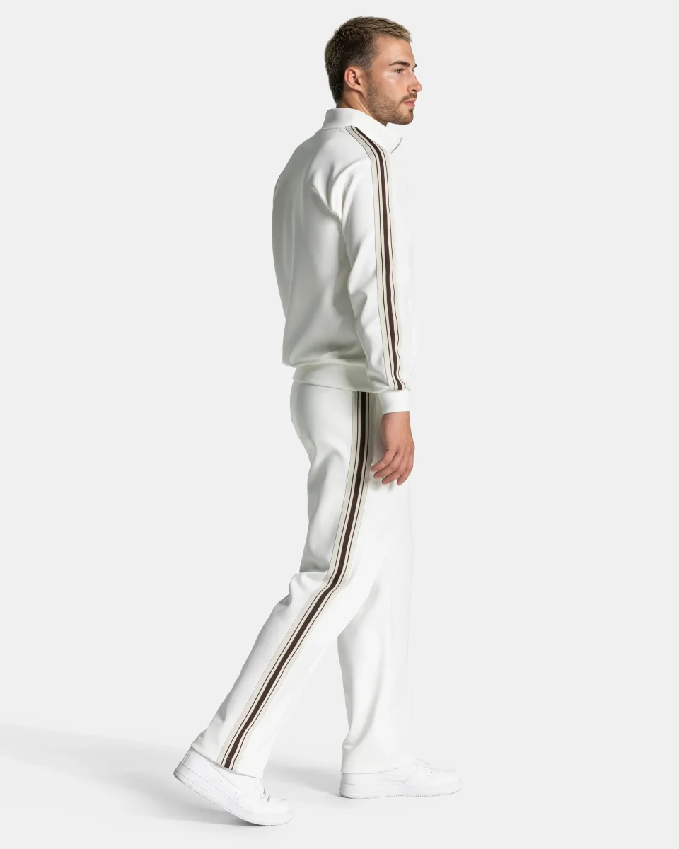 Der Club Straight Leg Jogger in Off White vereint klassische Athletik mit Street-Style. Seitliche Kontrast-Streifen und eine markante Biese sorgen in Kombination mit dem geraden Schnitt für einen cleanen Look. Der elastische Bund mit Kordelzug ermöglicht individuelle Anpassung, Reißverschlusstaschen mit Staydown Puller verstauen deine Essentials. Das gestickte TV Kontrast-Logo und eine angedeutete Leistentasche vervollständigen den Jogger.