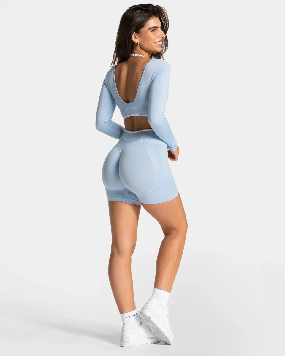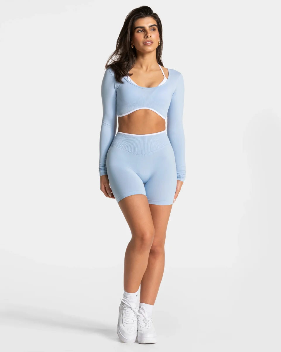 Das Contrastline Longsleeve ist in mehreren Farben erhältlich und lässt sich optimal mit der Contrastline Sculpt Scrunch Short oder Leggings sowie dem Contrastline Jogger kombinieren – für einen Look, der nicht nur performt, sondern auch beeindruckt. Hier findest du noch einmal alle Vorteile des Contrastline Longsleeves in Babyblau im Überblick: