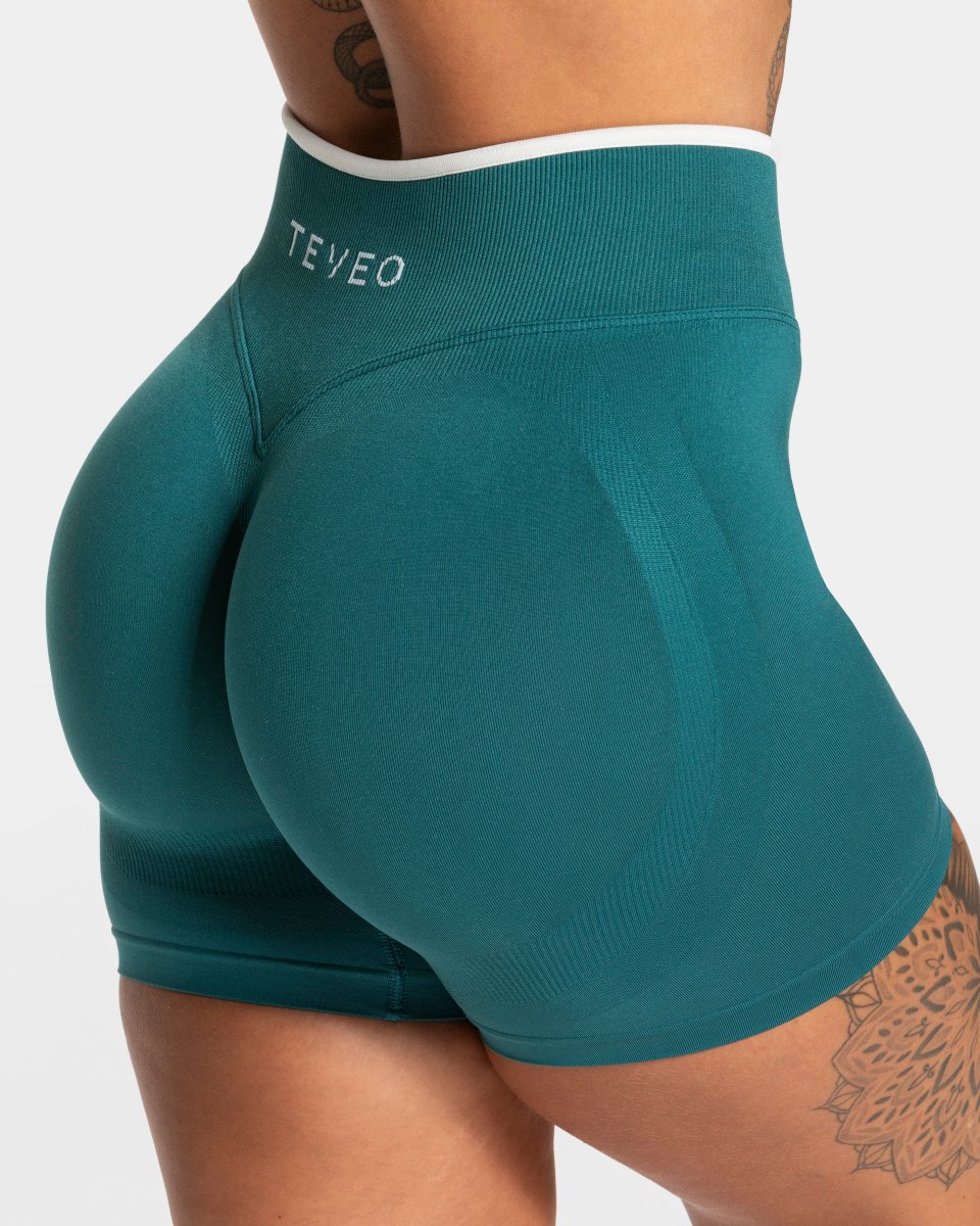 Die Contrastline Sculpt Scrunch Short in Petrol betont deinen Booty durch den nicht sichtbaren und von innen verstärkten Scrunch. Zugleich sorgen der formende V-Bund sowie die Push-Booty Kontur für den unverwechselbaren TEVEO Push. Die weißen Kontrastnähte der Short sorgen für einen sportlich-eleganten Look.