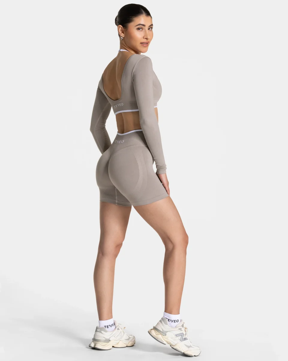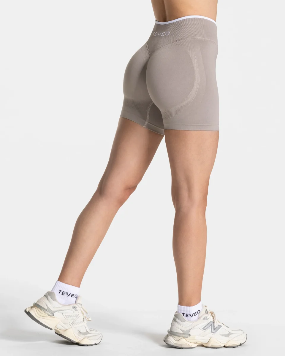 Die Contrastline Sculpt Scrunch Short in Stone betont deinen Booty durch den nicht sichtbaren und von innen verstärkten Scrunch. Zugleich sorgen der formende V-Bund sowie die Push-Booty Kontur für den unverwechselbaren TEVEO Push. Die weißen Kontrastnähte der Short sorgen für einen sportlich-eleganten Look.