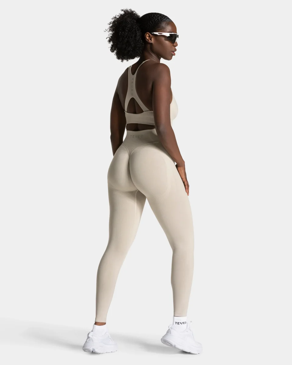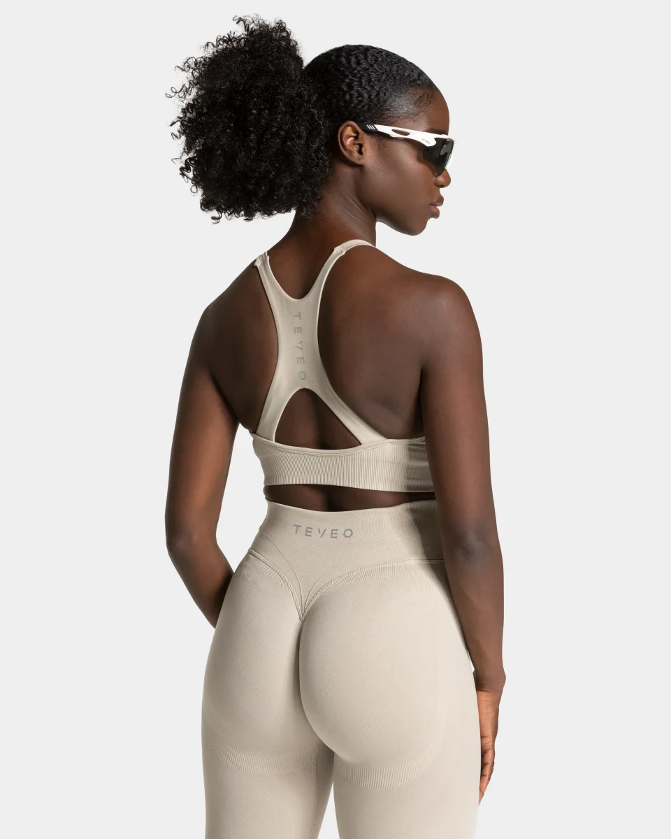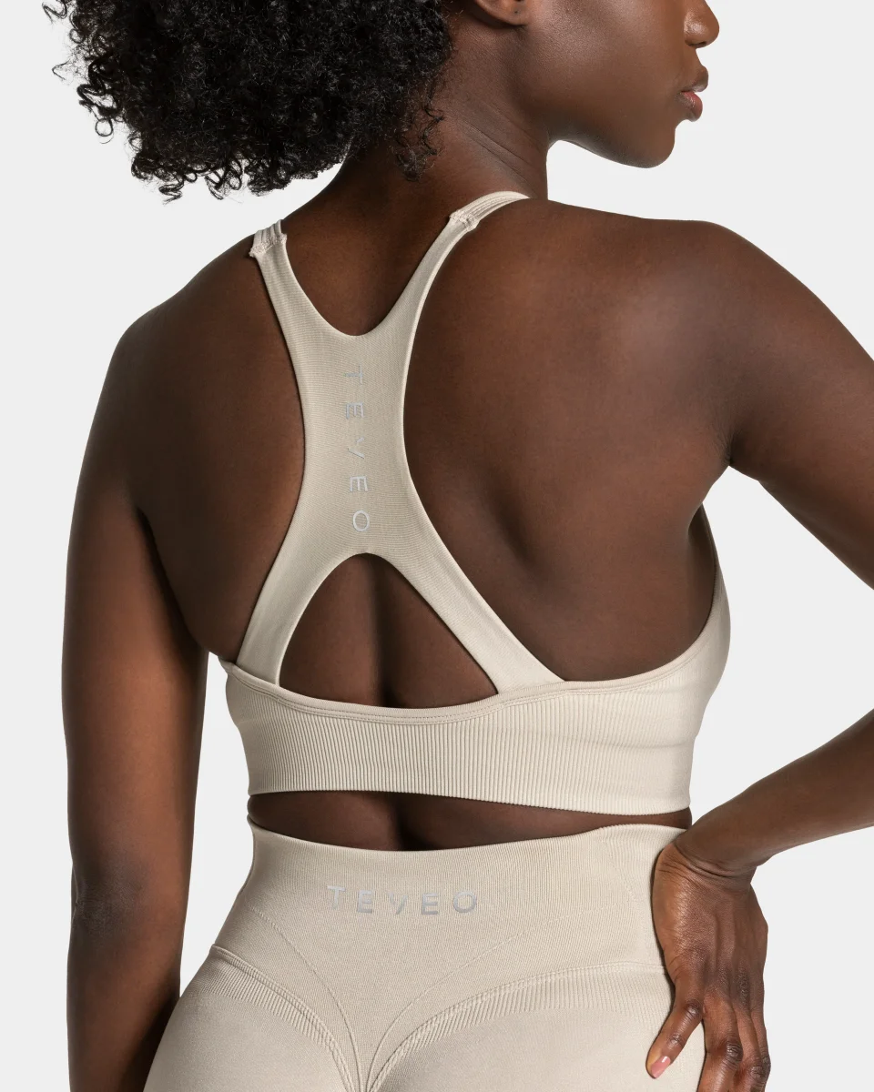 Dein perfekter Trainingspartner: Der Endorphin BH in Latte ohne verstellbare Träger garantiert dir ein nahtloses, bequemes Tragegefühl, das jede Bewegung mitmacht. Der Racerback mit reflektierendem TEVEO-Logo zieht alle Blicke auf sich und sorgt gleichzeitig für Sichtbarkeit im Dunkeln. Die festen, breiten Träger und die Ripp-Struktur am Bund geben dir stabilen Halt bei jedem Run.