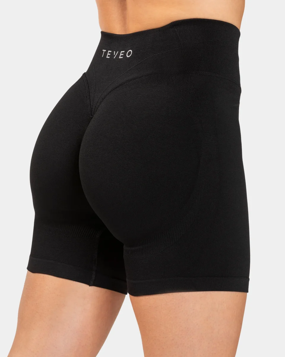 Die Endorphin Sculpt Scrunch Shorts in Schwarz bringt Shape und Power auf ein neues Level. Der Sculpt Booty Scrunch, die Design-Linien am Bund sowie Piqué- und Ripp-Struktur sorgen für maximalen TEVEO-Push und definierte Kurven. Ein echtes Highlight: die Eingriffstasche am hinteren Bund – perfekt für Schlüssel, Karten oder Essentials. Mit dem doppelten V-Shape-Bund und dem reflektierenden TEVEO-Logo wird die Shorts zum absoluten Hingucker.