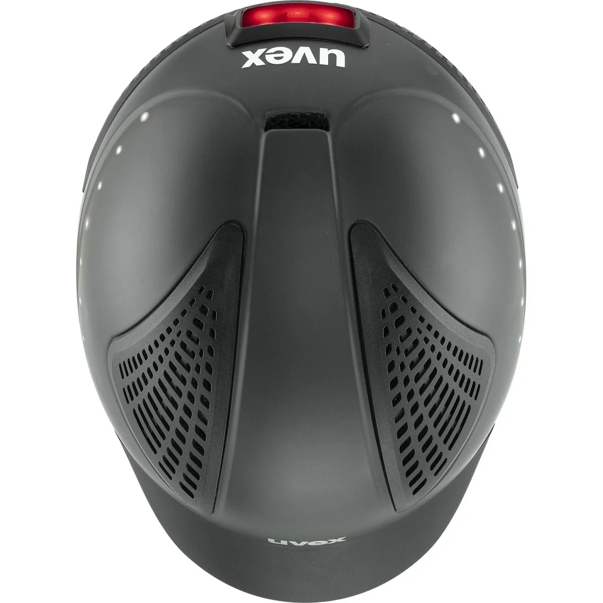 L’UVex exxential II LED est le premier casque d’équitation uvex doté d’un système d’éclairage innovant. Les spots LED intégrés (blanc sur le côté, rouge à l’arrière) ne sont pas visibles en mode veille et sont activés sur simple pression d’un bouton. Une autre caractéristique très pratique du polyvalent sportif est qu’il répond aux normes des casques de conduite et de cyclisme, offrant aux cyclistes une protection parfaite en tout temps, même lorsqu’ils se rendent dans les écuries.