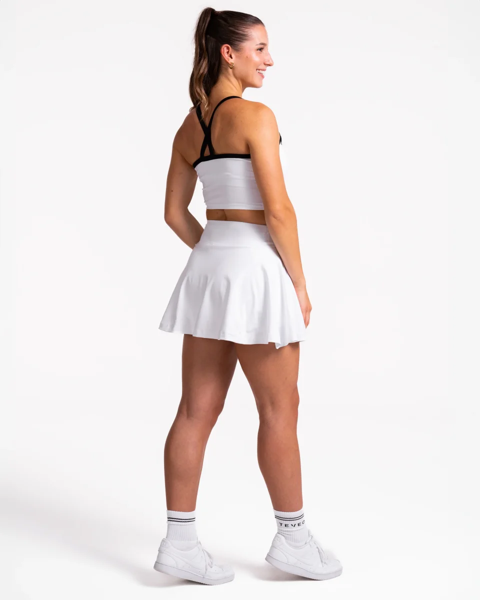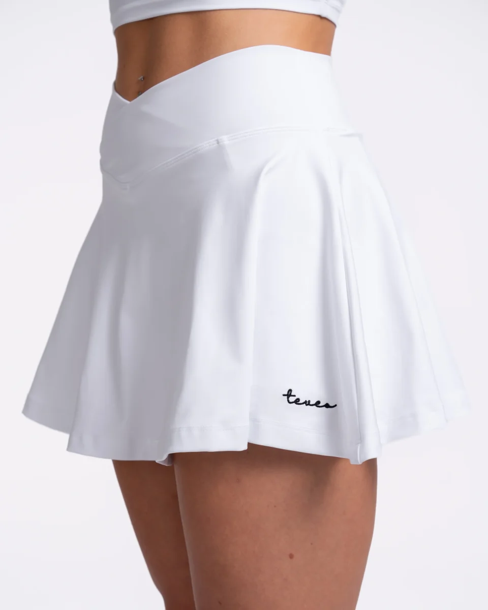 Der Fearless V-Shape Tennis Skort in Weiß ist dein Highlight für den Sommer. Sowohl der formgebende V-Shape-Bund als auch der feminine, verspielte Schnitt mit dem geschwungenen TEVEO Logo schmeicheln deiner Figur. Die integrierten Shorts mit Taschen bieten zusätzlichen Komfort und Platz für kleine Essentials wie Schlüssel oder Handy.