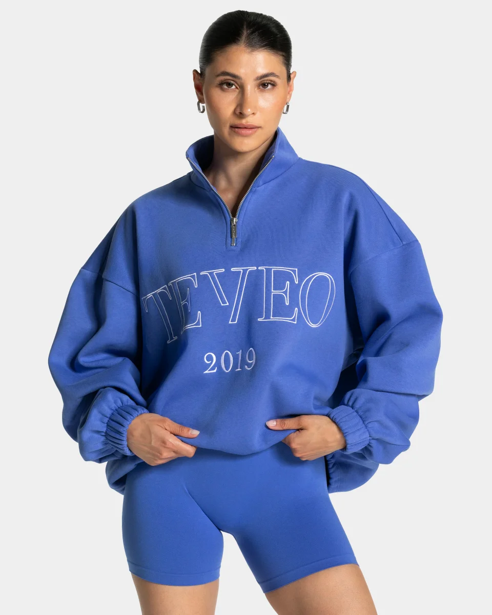 Komfort und Gemütlichkeit wird bei uns groß geschrieben. Unser Femme Half Zip Sweater in Royalblau überzeugt mit seinem Oversized Fit und dem superweichen Material. Der Bund kann mit dem Kordelzug ganz nach Belieben enger oder weiter gezogen werden.