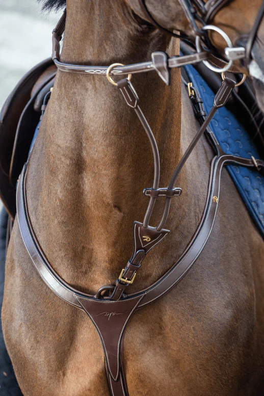 Fourchette De Martingale A Anneaux Elastique avec des élastiques ronds de 8mm de diamètre avec écartement des anneaux réglable par une patte en cuir coulissant sur les branches.
