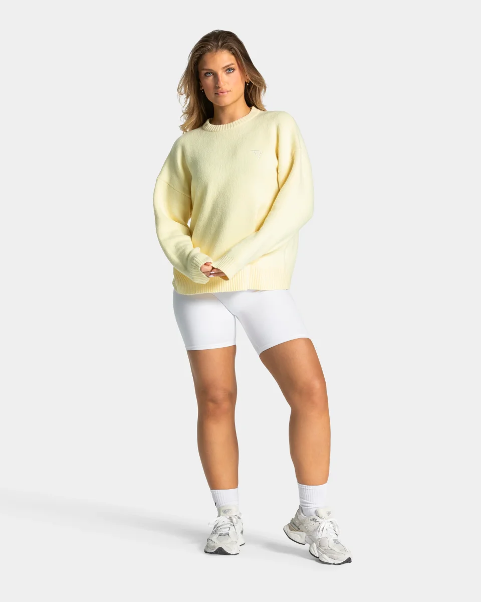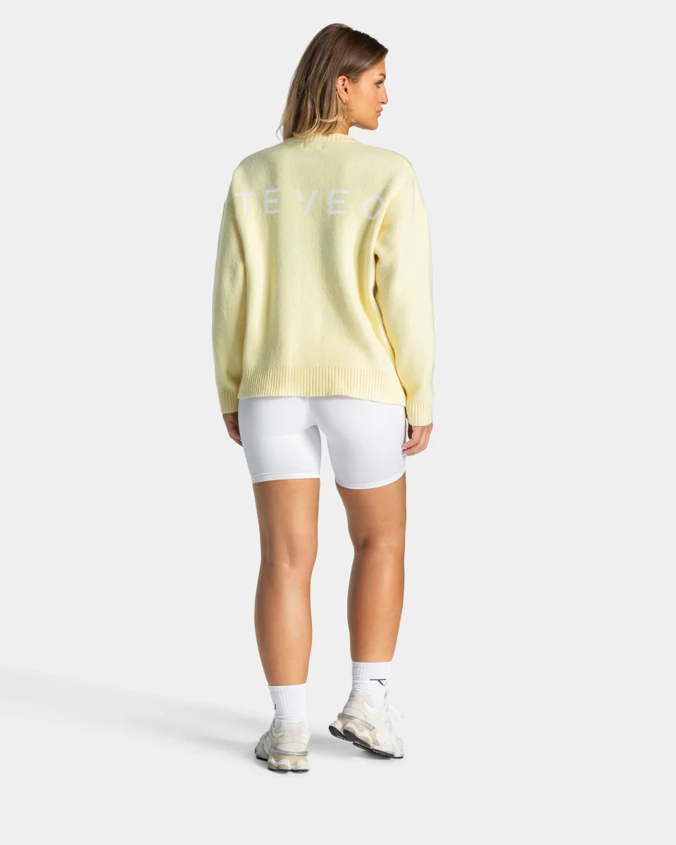 Der Knit Sweater in Butter Yellow lässt sich optimal mit den anderen Pieces der Knit Kollektion kombinieren.