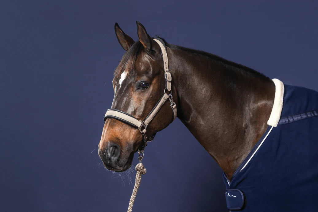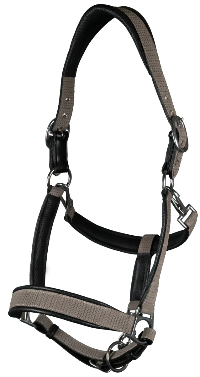 Descriptif Licol Nubuck Caractéristiques techniques – Composition • Cuir nubuck imprimé• Gris – doublure noire / Marron – doublure Navy / Navy – Doublure Marron foncé / Tan – Doublure Malt• Têtière et muserolle matelassée• Arrière de la muserolle ajustable• Sous gorge détachable -Adaptable en version grooming
