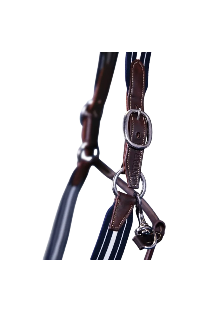 Avec ce licol d’équitation, le cheval bénéficie d’une protection efficace en cas de forte traction. Ses élastiques au niveau de la têtière et des montants permettent en effet d’accompagner les mouvements soudains et évitent le phénomène de butée sur la tête de l’équidé.