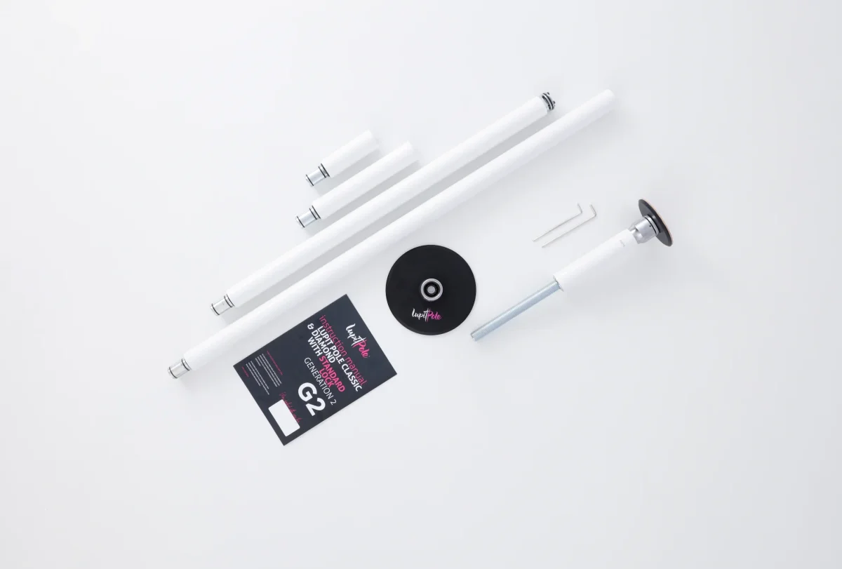 NB : Avant d’effectuer tout achat, assurez-vous d’avoir mesuré la hauteur du sol au plafond à l’endroit où vous souhaitez installer la barre. Cela vous permettra, si besoin, de vous procurer les extensions appropriées pour atteindre la hauteur souhaitée. La pole doit absolument être placée sous une structure/plafond solide. Ne pas la placer sous un faux plafond, à moins que celui-ci ne soit spécialement renforcé.