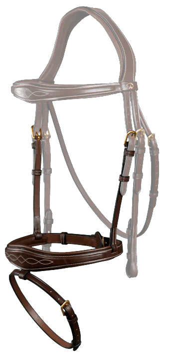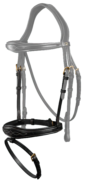 Descriptif Muserolle élargie au centre légèrement bombée avec surpiqure décorative Caractéristiques techniques – Composition • Sous barbe amovible 1/2 ‘’ (13mm)• Compatible avec les têtières de la D Collection
