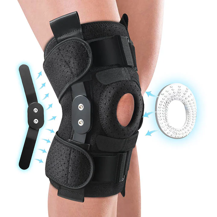 Des charnières latérales renforcées et amovibles assurent une stabilisation élevée en limitant les torsions indésirables, particulièrement utile en cas d’instabilité du genou.