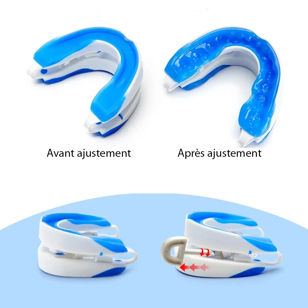 L’orthèse d’avancée mandibulaire est spécifiquement élaborée pour offrir une solution efficace contre le ronflement et l’apnée obstructive du sommeil en avançant la mâchoire inférieure. Cette technique simple permet de maintenir les voies respiratoires ouvertes pendant le sommeil, réduisant ainsi les épisodes d’apnée et améliorant significativement la qualité du sommeil.