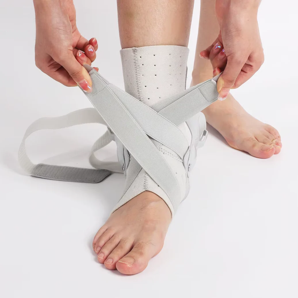 Découvrez notre Orthese de cheville, spécialement conçue pour offrir un soutien exceptionnel grâce à ses caractéristiques uniques, incluant un renforcement autour de la maléole avec des straps en Boa, une articulation pour une mobilité contrôlée, et des renforts plastiques latéraux pour une protection accrue.