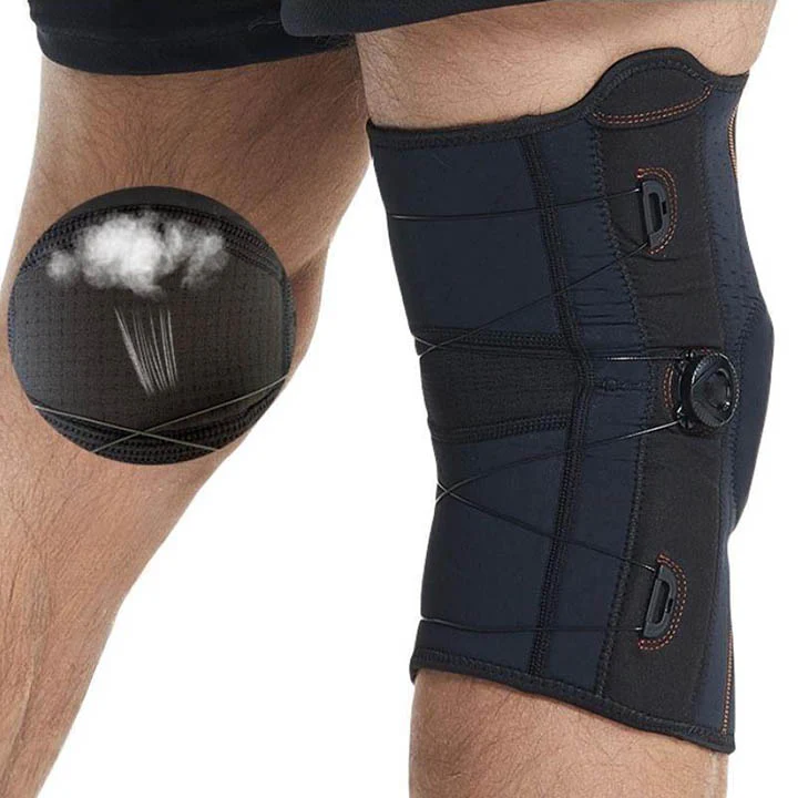 Des ressorts latéraux flexibles sont placés de chaque côté de l’orthèse pour offrir une stabilité accrue, aidant à prévenir les entorses et les mouvements indésirables du genou pendant l’activité physique.