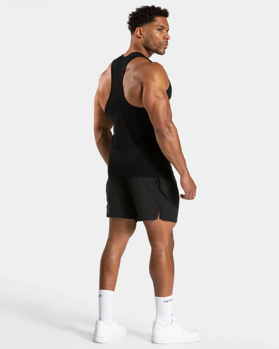 Das Pace Fitted Tank ist in mehreren Farben erhältlich und optimal mit unserer Pace Short in verschiedenen Längen kombinierbar. Hier findest du noch einmal alle Vorteile des Pace Fitted Tank in Schwarz auf einen Blick:
