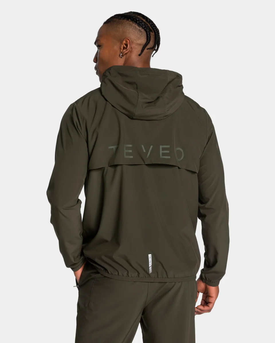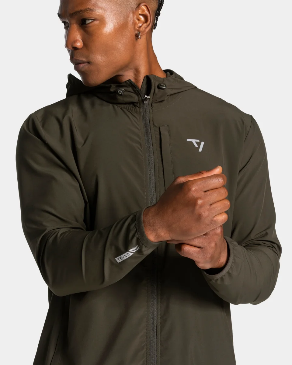 Die Pace Performance Jacke in Khaki liefert dir mit ihrem leichten, dehnbaren Material im Regular-Fit Performance ohne Kompromisse. Die Seitentaschen sowie die Brusttasche mit Staydown Puller bieten dir Stauraum für deine Essentials während des Laufs, gleichzeitig reguliert die Ventilationszone am Rücken mit tonal gehaltenem TEVEO Logo deine Temperatur. Der Gummibund am Jackenende und die Neopren-Tapes an den Ärmelenden sorgen für sicheren Halt. Unterstützt durch zwei verstellbare Adjuster an der Kapuze bleibst du – egal bei welchem Wetter – flexibel. Reflektierende Logo Details auf der Brust und am unteren Rücken runden das Design ab und sorgen bei Dunkelheit für bessere Sichtbarkeit.