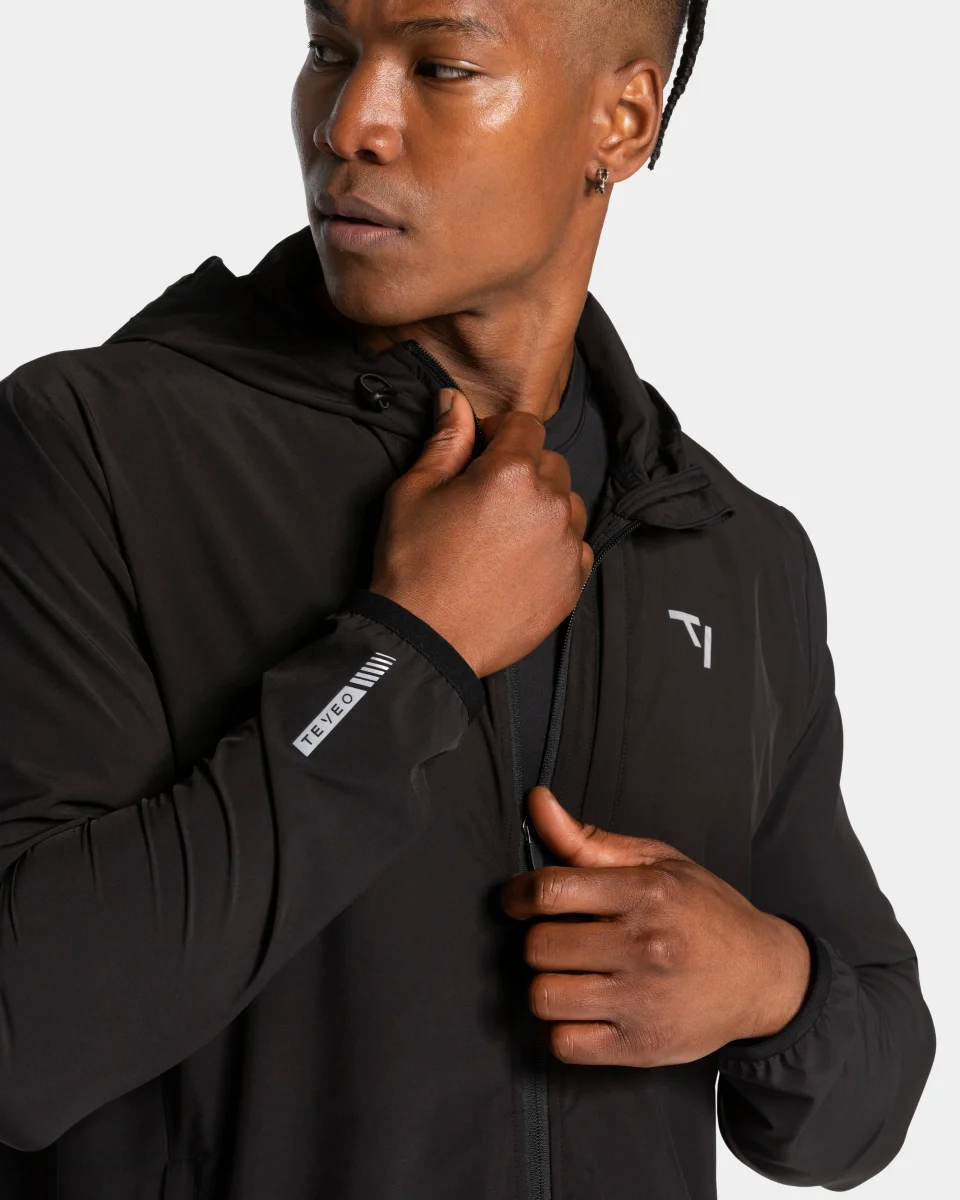 Die Pace Performance Jacke in Schwarz liefert dir mit ihrem leichten, dehnbaren Material im Regular-Fit Performance ohne Kompromisse. Die Seitentaschen sowie die Brusttasche mit Staydown Puller bieten dir Stauraum für deine Essentials während des Laufs, gleichzeitig reguliert die Ventilationszone am Rücken mit tonal gehaltenem TEVEO Logo deine Temperatur. Der Gummibund am Jackenende und die Neopren-Tapes an den Ärmelenden sorgen für sicheren Halt. Unterstützt durch zwei verstellbare Adjuster an der Kapuze bleibst du – egal bei welchem Wetter – flexibel. Reflektierende Logo Details auf der Brust und am unteren Rücken runden das Design ab und sorgen bei Dunkelheit für bessere Sichtbarkeit.