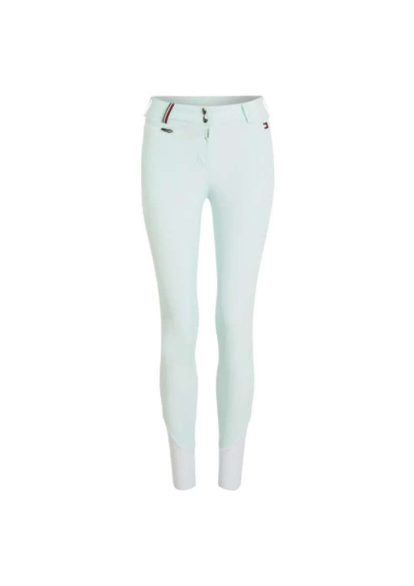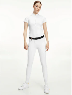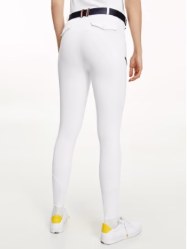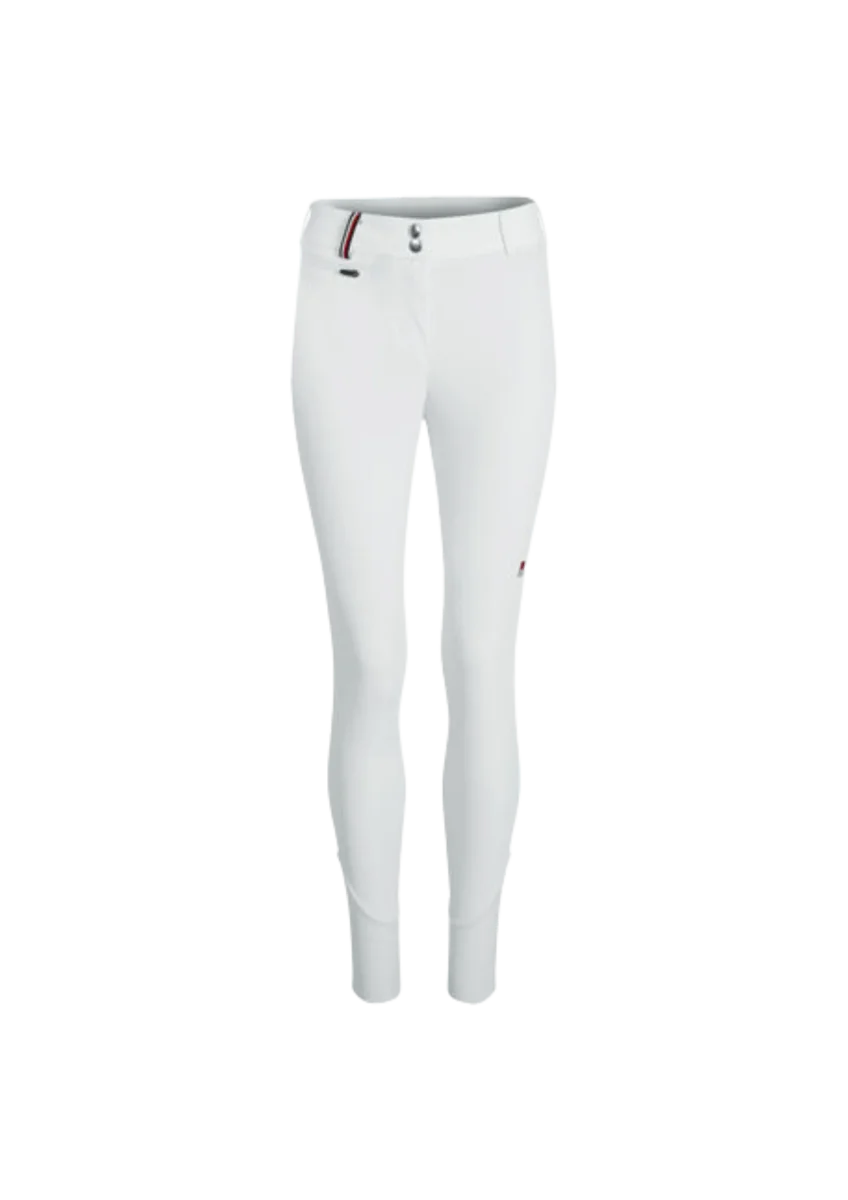 Pantalon d’équitation technique en tricot double extensible dans les 4 sens avec une poche à monnaie cachée avec fermeture éclair et une poche pour smartphone, toutes deux sur la jambe droite. Poches arrière à rabat. Logo brodé sur la jambe gauche. Grip en silicone aux genoux pour un maintien parfait en selle. Extrémités des jambes en matière particulièrement fine et élastique pour encore plus de confort. Redeviendra idéalement blanc après lavage. La taille du logo est conforme à la FEI.