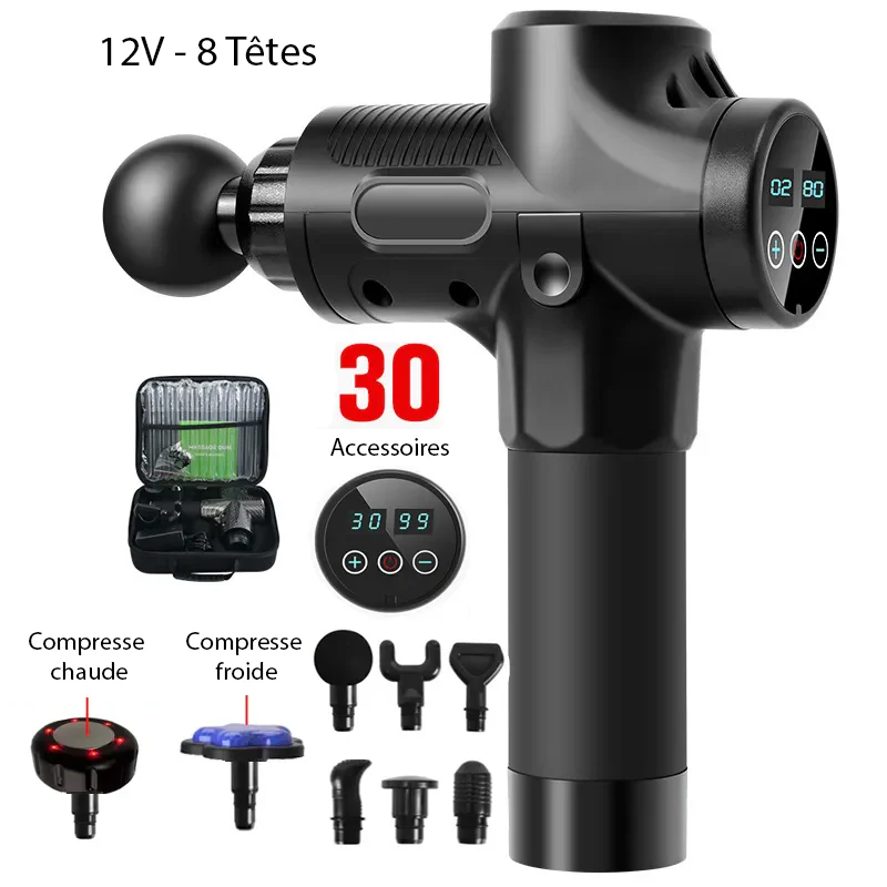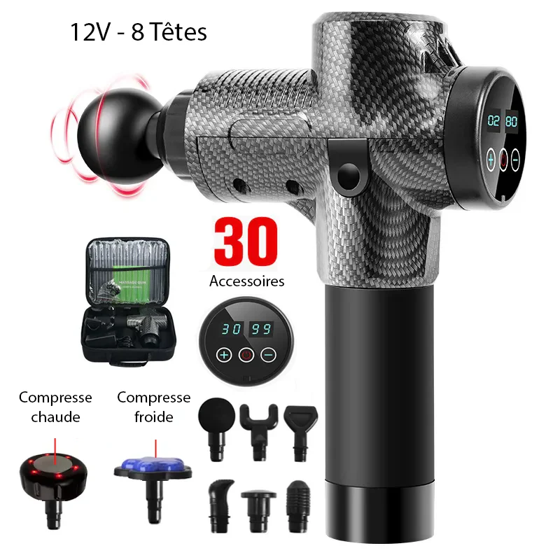 Disponible en 3 coloris, noir, carbone et argent, le Pistolet de massage professionnel est une solution de détente musculaire avancée est doté d’un écran intuitif présentant options de vitesse et indicateur de charge de batterie. Avec ses 8 têtes interchangeables, il cible avec précision les différents groupes musculaires, s’adaptant à toutes les nécessités de massage. Portatif et ergonomique, ce pistolet de massage est idéal pour une récupération rapide post-effort.