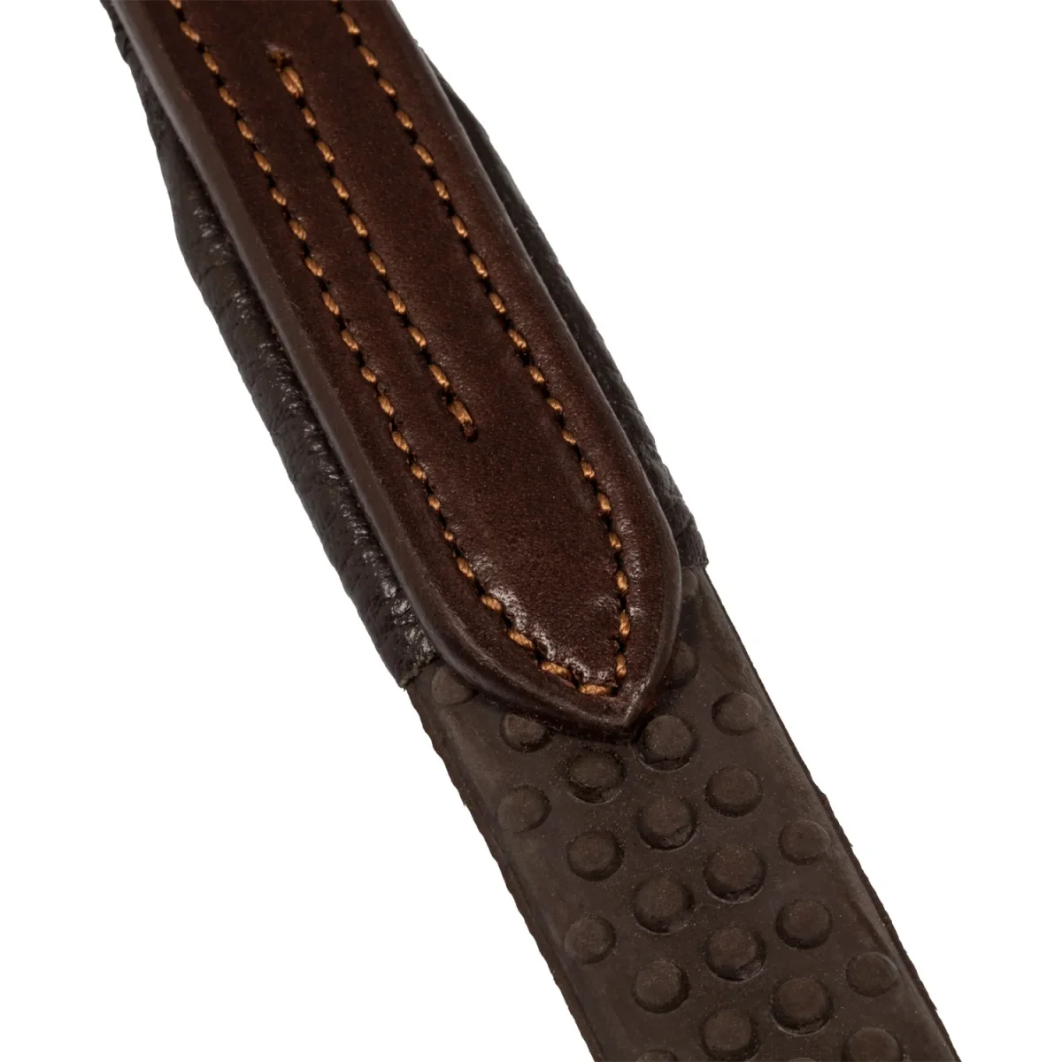 Le caoutchouc des rênes présente des reliefs en forme de flèche, qui non seulement assurent une prise en main confortable, mais aussi une adhérence exceptionnelle, pour un contrôle total de votre cheval.