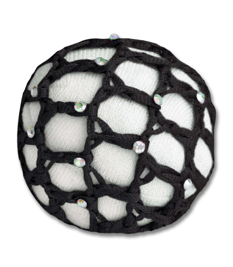 descriptif Résille élégante pour cheveux avec nœud embelli par des cristaux scintillants.