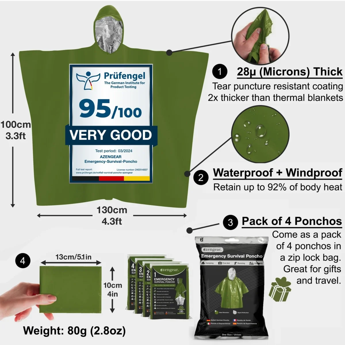 • STAY WARM AND DRY IN ANY WEATHER – aZengear emergency survival poncho with a head hood is waterproof and windproof, so you can stay warm and comfortable even in the very cold weather and heaviest rain or strongest wind.