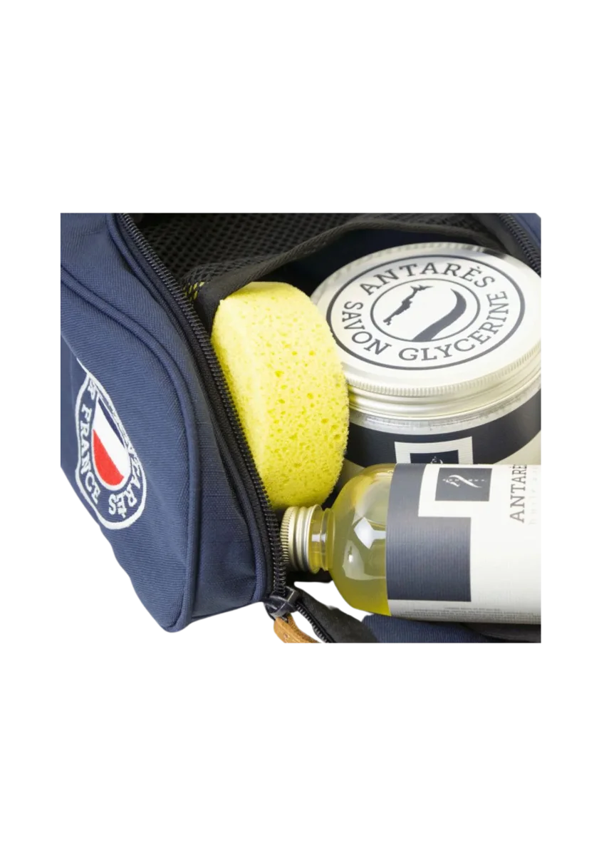 Transportez vos produits d’entretien pour vos cuirs à la sellerie comme sur les terrains de concours avec le sac Antarès, fonctionnel et esthétique.