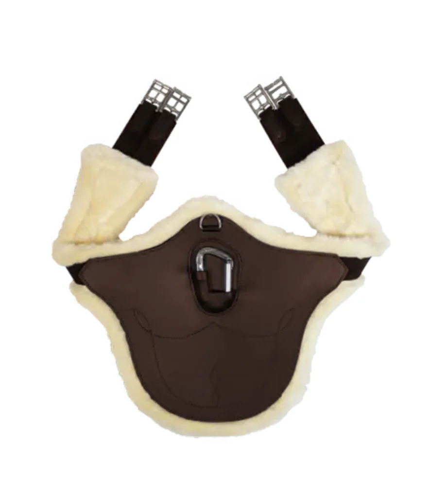 La conception anatomique de cette sangle à bavette a été soigneusement élaborée pour prioriser le confort et les performances de votre cheval. Sa forme libère les coudes, réduisant les restrictions et permettant des mouvements naturels et fluides. La répartition uniforme de la pression, assurée par les élastiques aux deux extrémités, minimise l’inconfort et favorise la relaxation, même lors d’un travail intensif. L’ajout de peau de mouton artificielle douce offre un amorti exceptionnel, parfait pour les chevaux à la peau sensible. Grâce au Velcro situé au dos de la peau de mouton, elle peut être facilement retirée et changée. Le mousqueton central plat s’intègre discrètement dans le design pour renforcer la sécurité sans compromettre l’élégance ni la liberté de mouvement du cheval.