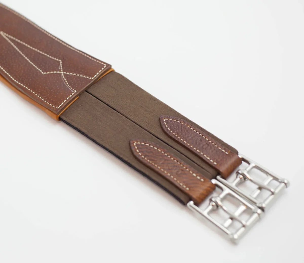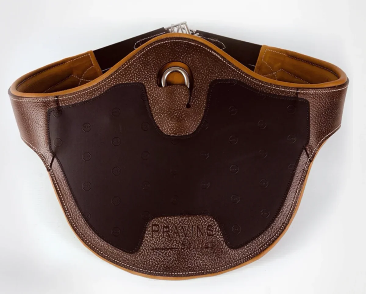 Nos sangles de CSO ont été étudiées pour épouser parfaitement la morphologie de la cage thoracique du cheval. Elles sont réalisées avec des cuirs de première qualité résistants et souples. Elles sont recouvertes d’une plaque en caoutchouc pour augmenter la résistance de la sangle au choc des sabots