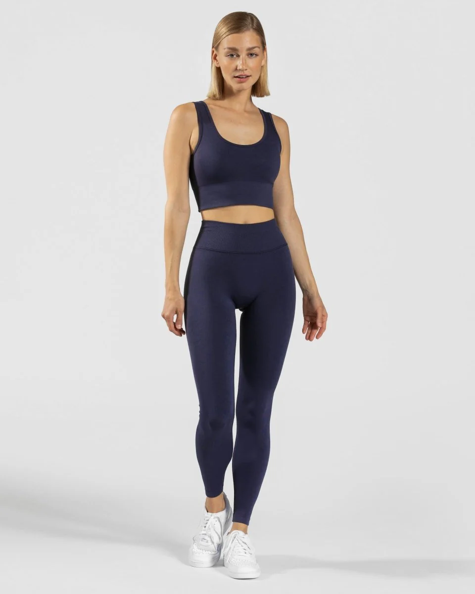 Am besten kombinierst du zur Sensation Leggings in Dunkelblau das Sensation Crop Top oder den Sensation Bh. Die Leggings gibt es zusätzlich auch als Shorts für die heißen Sommertage.