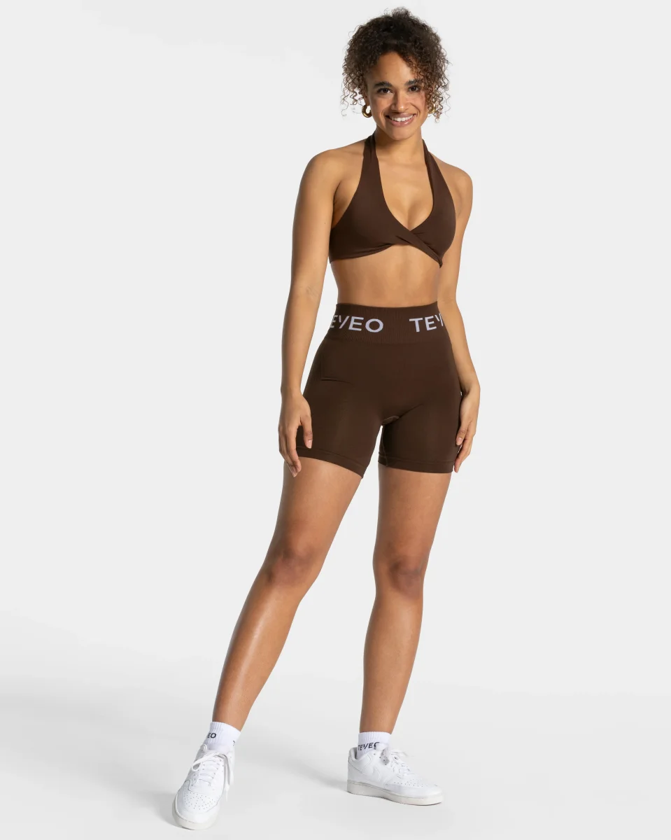 Create your Signature TEVEO Look! Unsere Signature Scrunch Short in Dunkelbraun betont deinen Kurven und gibt dir einen optimalen Fit für dein Training. Durch den Booty Scrunch sowie der Booty Kontur mit Kompression wird dein Gesäß optisch angehoben und formt einen schönen runden Po.