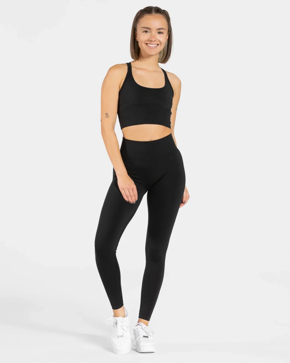 Der Statement Bh in Schwarz mit herausnehmbaren Pads ist das perfekte Gegenstück zur Statement Leggings. Dieser gibt dir durch den breiten Bund einen hervorragenden Support. Besonders setzt der Statement Bh in Schwarz aber durch den Rückenausschnitt deinen Rücken in Szene.