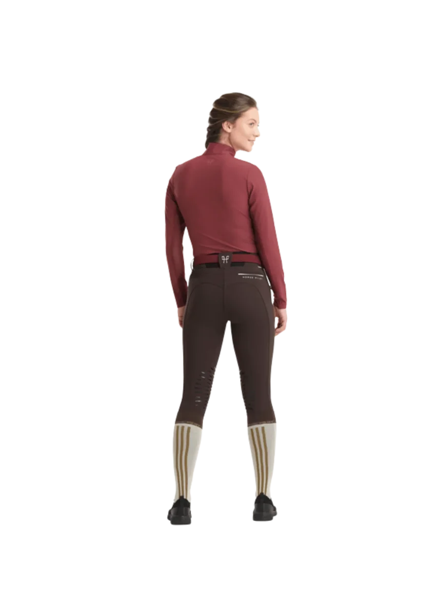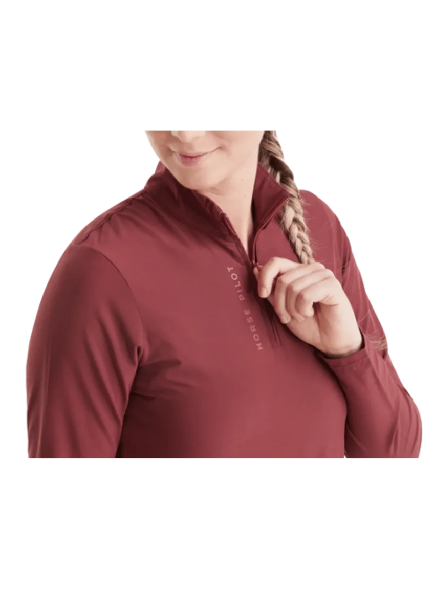 – Ouverture partielle du col avec zip discret et ajustable selon l’envie de la cavalière