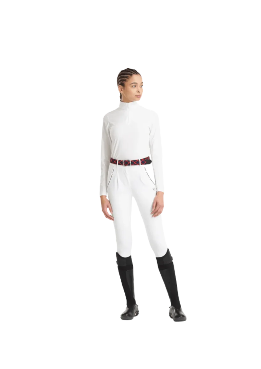 – Coupe ajustée se porte à l’entraînement comme sous la veste de concours