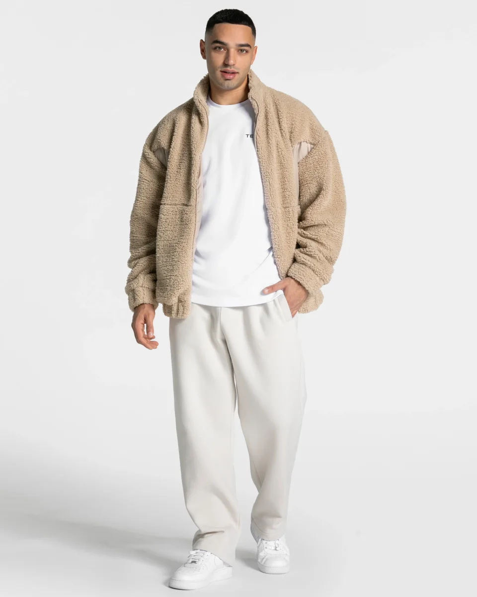 Lass dich von der weichen Teddy Jacke in Peanut verzaubern, die dir an kalten Tagen sowohl Wärme als auch Stil bietet. Aus hochwertigem, flauschigem Teddy-Fleece gefertigt, schmiegt sich die Jacke angenehm an deinen Körper und sorgt dank der warmen Fütterung für ein kuscheliges Tragegefühl. Der hohe Kragen schützt dich zuverlässig vor Wind und Kälte und gibt der Jacke ihren coolen, modernen Touch.