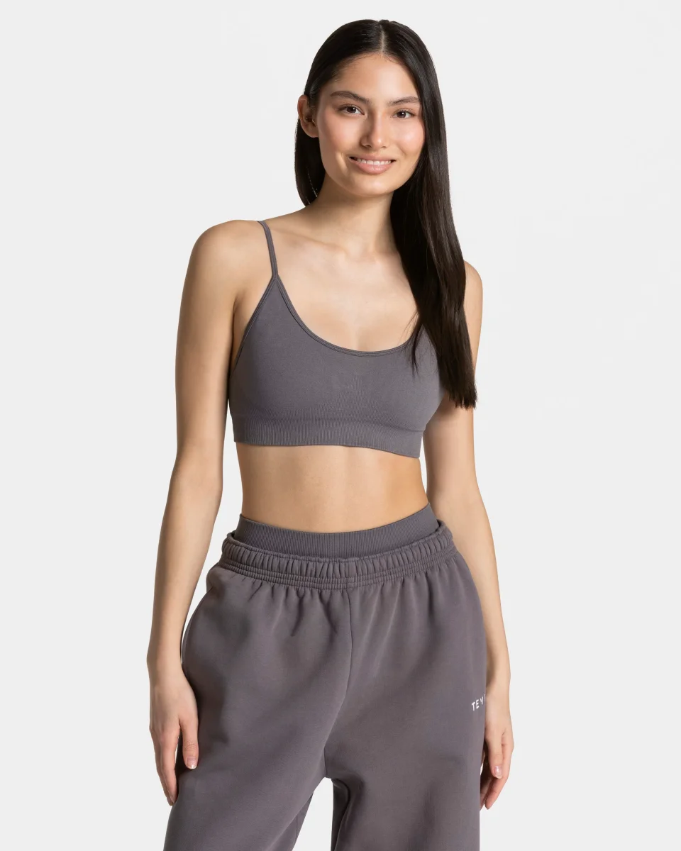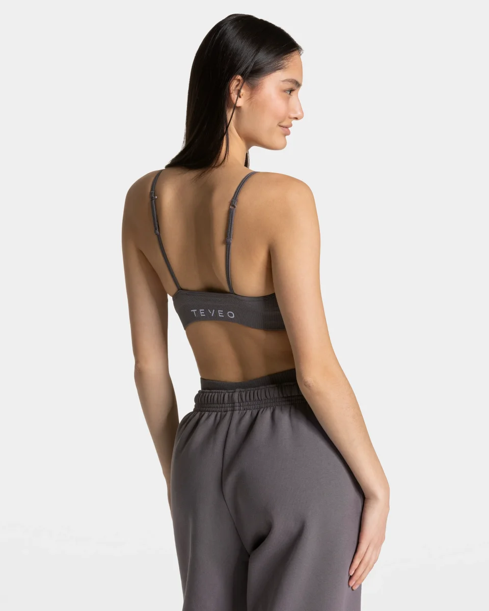 Der Timeless Pro BH in Graphit: Verstellbare Träger für einen klassischen oder Cross Back Look, ganz nach deinem Belieben. Dank der Rippstruktur am Bund bietet er Medium Support und kombiniert elegantes Design mit Funktion. Das Kontrast-Logo auf der Rückseite vervollständigt das minimalistische Design.