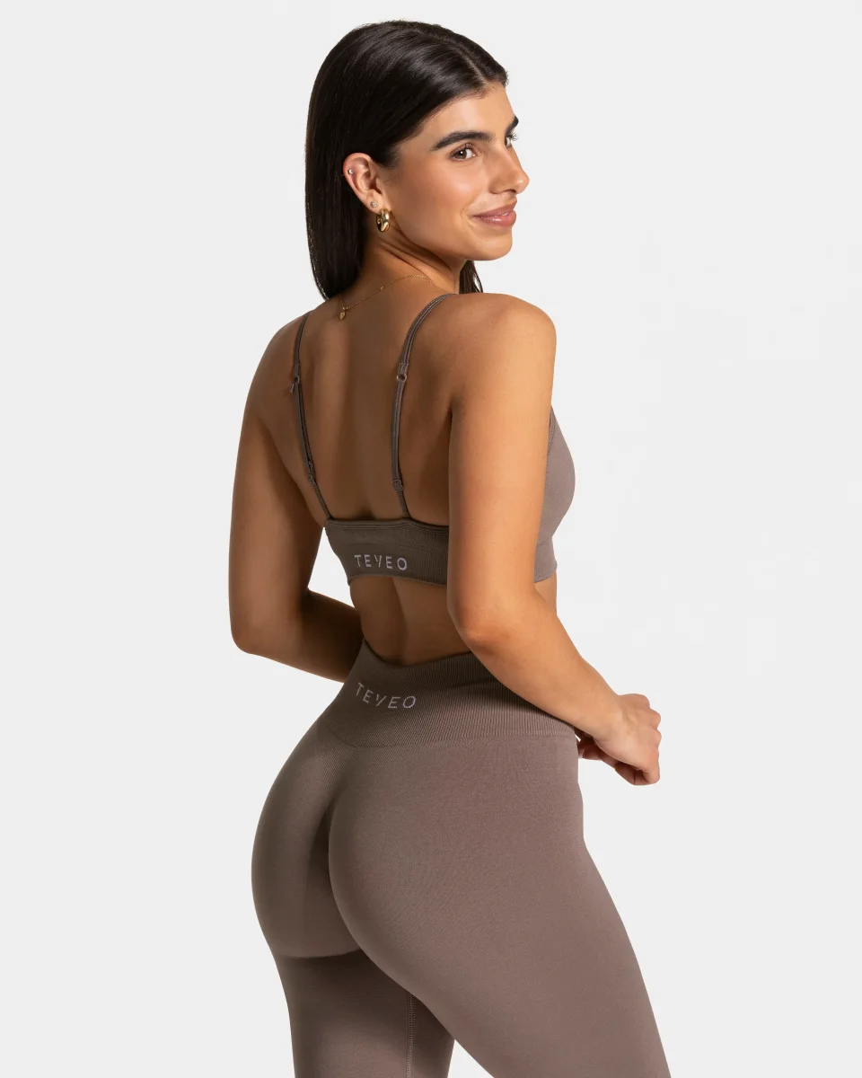 Der Timeless Pro BH in Mokka: Verstellbare Träger für einen klassischen oder Cross Back Look, ganz nach deinem Belieben. Dank der Rippstruktur am Bund bietet er Medium Support und kombiniert elegantes Design mit Funktion. Das Kontrast-Logo auf der Rückseite vervollständigt das minimalistische Design.
