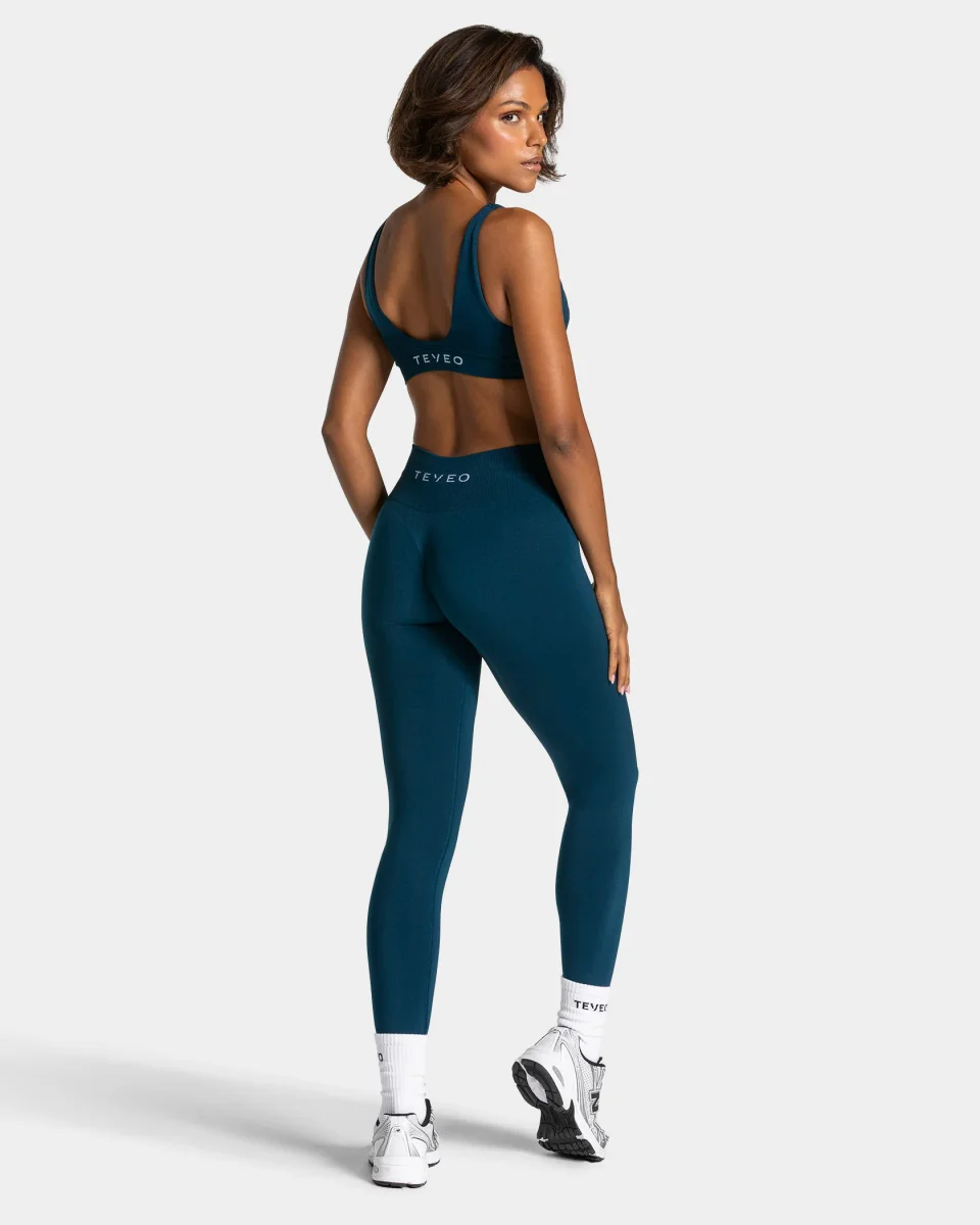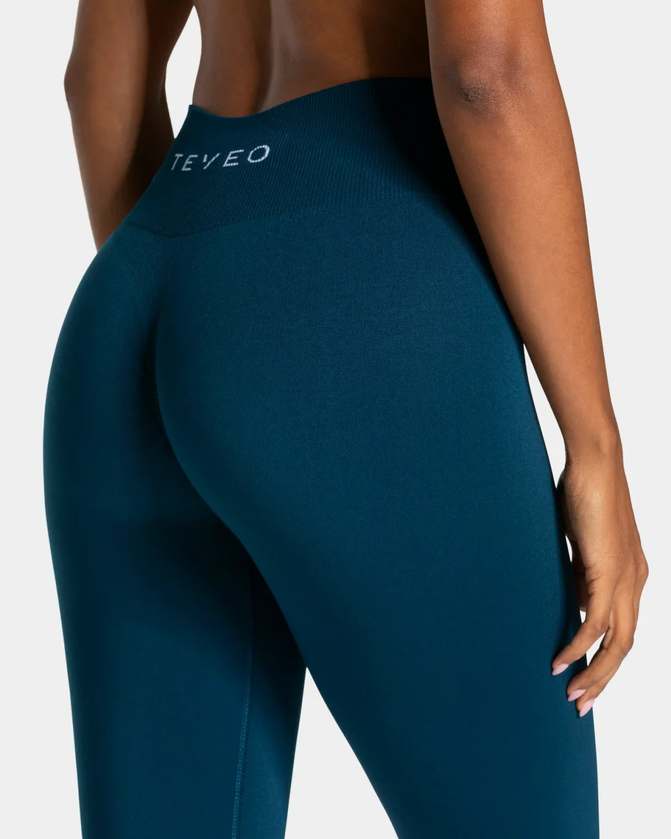 Die Timeless Pro Covert Scrunch Leggings in Dark Teal heben Shaping auf ein neues Level. Dank unserer weiterentwickelten Seamless-Technologie bietet die Leggings eine noch höhere Kompression. Ergänzend durch den beliebten Covert Scrunch sorgt die Leggings für den idealen TEVEO-Push. Das hochwertige weiße Logo setzt einen dezenten, aber stilvollen Akzent und rundet das Design perfekt ab.