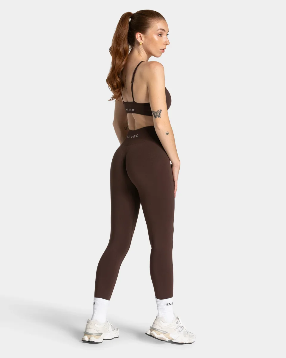 Die Timeless Pro Covert Scrunch Leggings in Espresso heben Shaping auf ein neues Level. Dank unserer weiterentwickelten Seamless-Technologie bietet die Leggings eine noch höhere Kompression. Ergänzend durch den beliebten Covert Scrunch sorgt die Leggings für den idealen TEVEO-Push. Das hochwertige weiße Logo setzt einen dezenten, aber stilvollen Akzent und rundet das Design perfekt ab.
