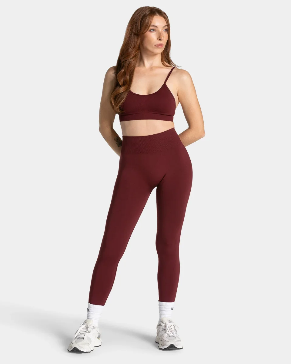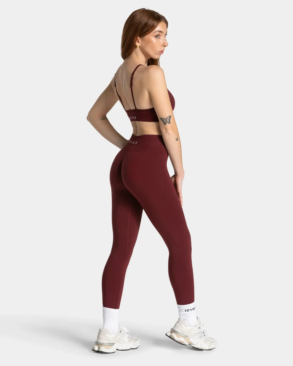 Die Timeless Pro Covert Scrunch Leggings in Weinrot heben Shaping auf ein neues Level. Dank unserer weiterentwickelten Seamless-Technologie bietet die Leggings eine noch höhere Kompression. Ergänzend durch den beliebten Covert Scrunch sorgt die Leggings für den idealen TEVEO-Push. Das hochwertige weiße Logo setzt einen dezenten, aber stilvollen Akzent und rundet das Design perfekt ab.