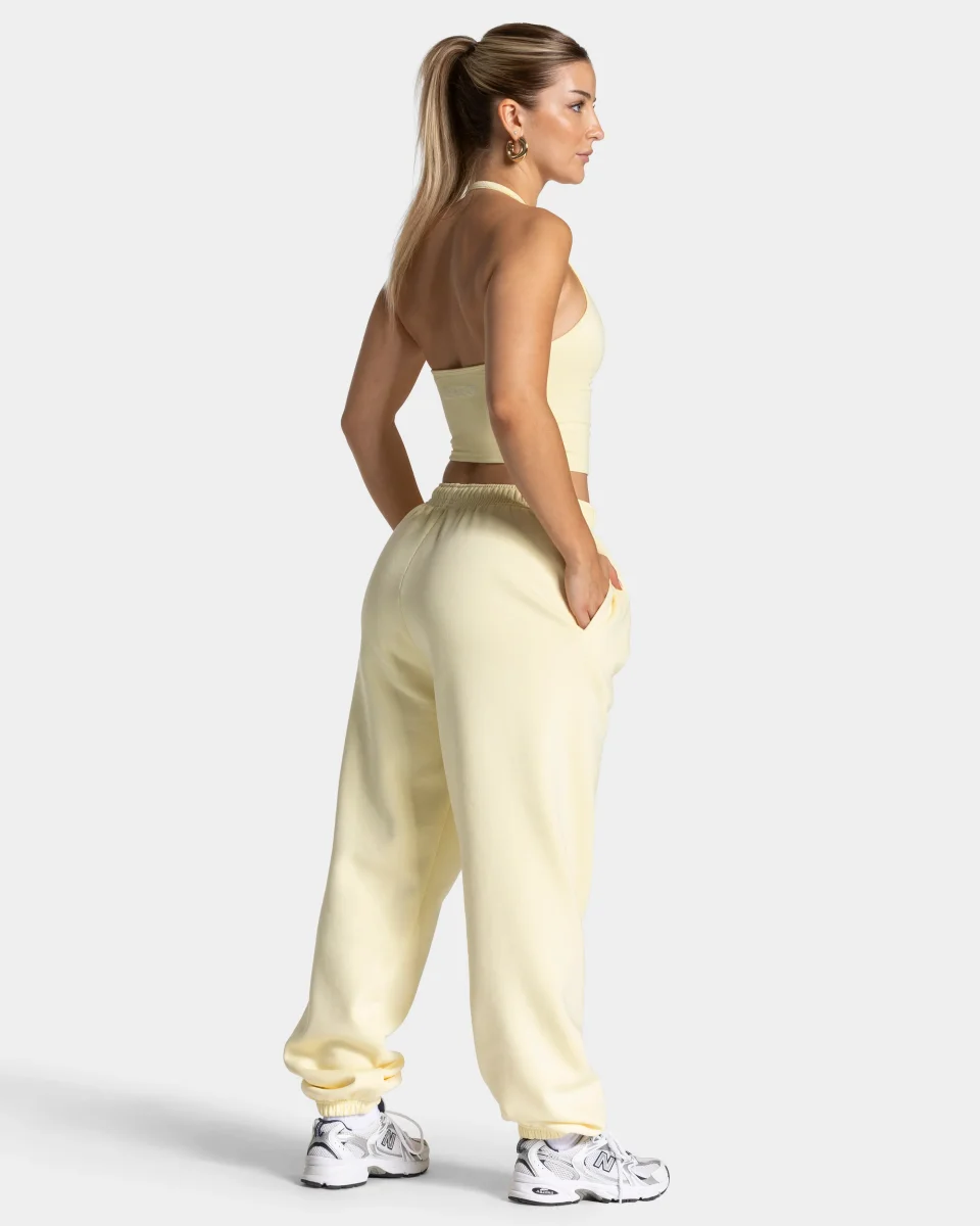 Der Timeless Pro Jogger in Butter Yellow aus hochwertigem, 100% Baumwollstoff – für maximalen Komfort und lässigen Style. Der elastische Bund mit Kordelzug sorgt für eine individuelle Passform, während der Gummizug am Beinende den Jogger perfekt abrundet und ihn zum idealen Pump Cover macht.
